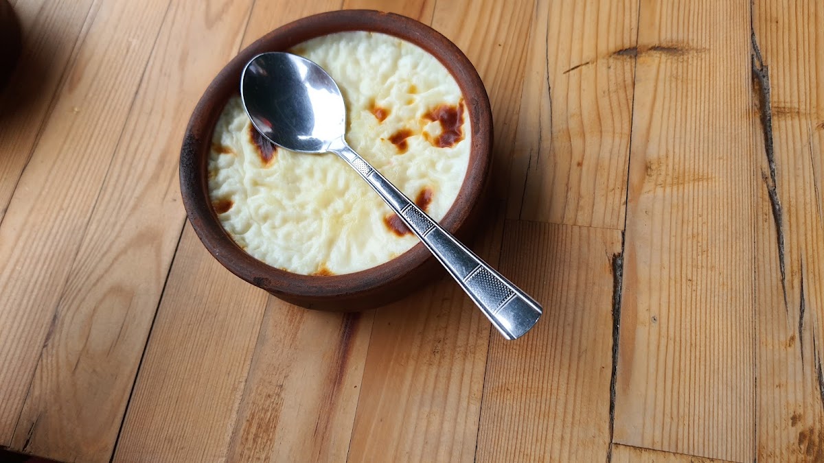 Çam Sakızlı Sütlaç in the quiet village of Keşoğlu near Kümbet is a petite cafe that specializes in a very particular local delight: pine mastic flavored sütlaç (rice pudding). This spot offers a calm retreat from the usual bustle, with a homey interior where a wood stove softly warms the space even during summer evenings, lending a cozy, slightly rustic mood that suits the slow pace of village life.